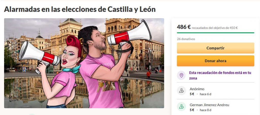 La campaña la lanzaron a mediados de enero del 2022 y en pocos días lograron llegar a la cifra que necesitaban, 450€ para ir a Valladolid, visitar diferentes instituciones con su megáfono y asistir al cierre de campaña de Vox.