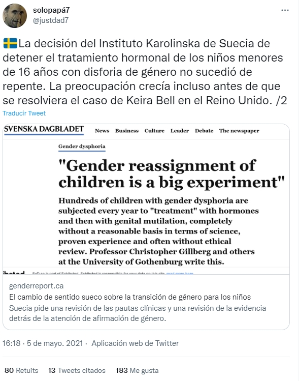 Incluso la TV pública sueca se ha hecho eco de todo este tema mediante una serie de documentales que tenéis recogidos en otro artículo del blog, The trans train