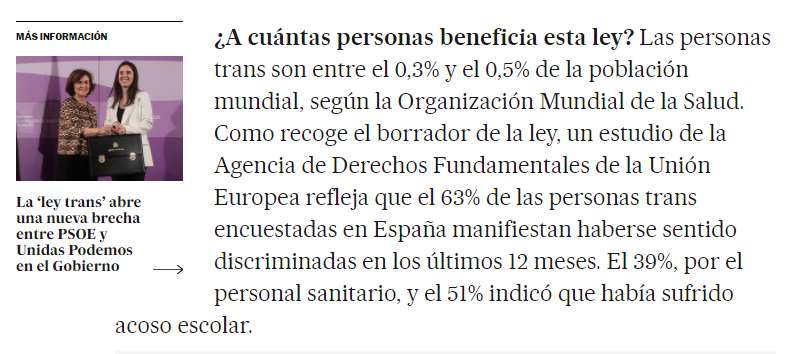 Supongo que el título que le ponen es para crear una repercusión mediática más alta, pero esta ley no tiene nada que ver realmente con las necesidades de las «personas transexuales».