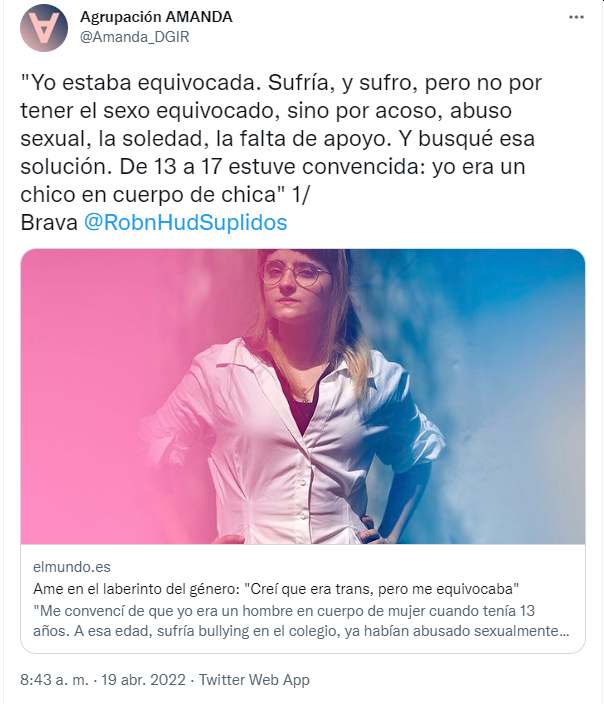 Quizás, y digo solo quizás, deberían haber escuchado a profesionales médicos que llevan años tratando estos temas, con los que se puede estar de acuerdo o no con los protocolos que siguen para entender que la transexualidad no es un juego.