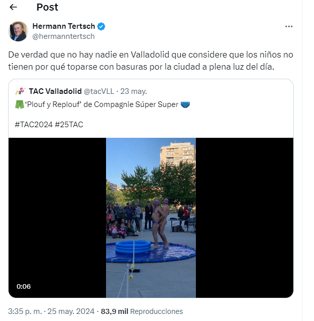 Hasta figuras políticas de Vox como Hermann Tertsch pedían responsabilidades de la presentación el el Festival de Teatro.