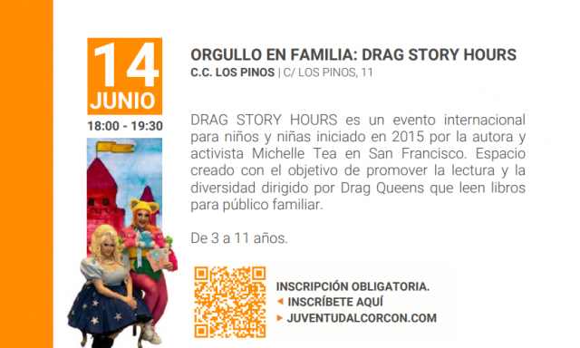 Orgullo en familia: Drag Story Hours es, según el programa del Ayuntamiento, «un evento internacional para niños y niñas iniciado por la autora y activista Michelle Tea en San Francisco», creado con el «objetivo de promover la lectura y la diversidad dirigido por drag queens que leen libros para un público familiar».